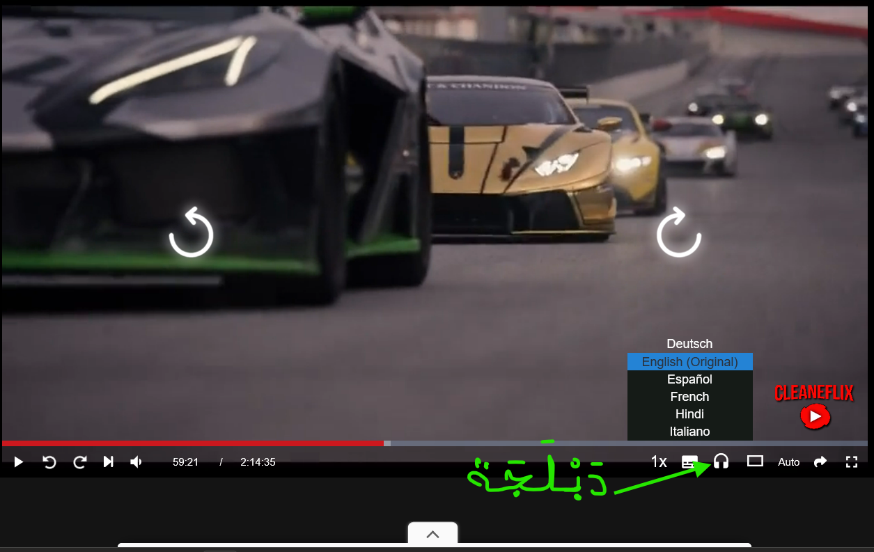 ุจุงุณุชุฎุฏุงู ุฃููููุฉ ุงูุณู ุงุนุงุช ๐ง ุงูู ูุฌูุฏุฉ ุนูู ุดุฑูุท ุงูููุฏููุ ูู ููู ุงุฎุชูุงุฑ ูุบุฉ ุงูุฏุจูุฌุฉ ุงูุชู ุชูุงุณุจู (ุงูุนุฑุจูุฉ – ุงูุฅูุฌููุฒูุฉ – ุงูุฅุณุจุงููุฉ – ุงูุฅูุทุงููุฉ…)
